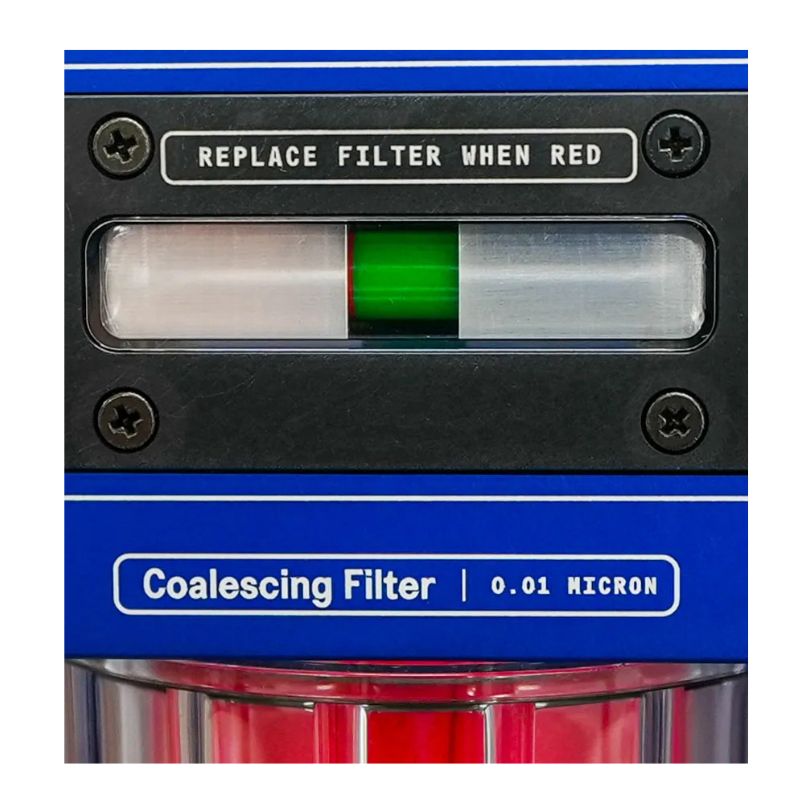 Stage 2 – Coalescing Filter. Removes 99.99% of the moisture, vapor and oil particles up to 0.01 micron.